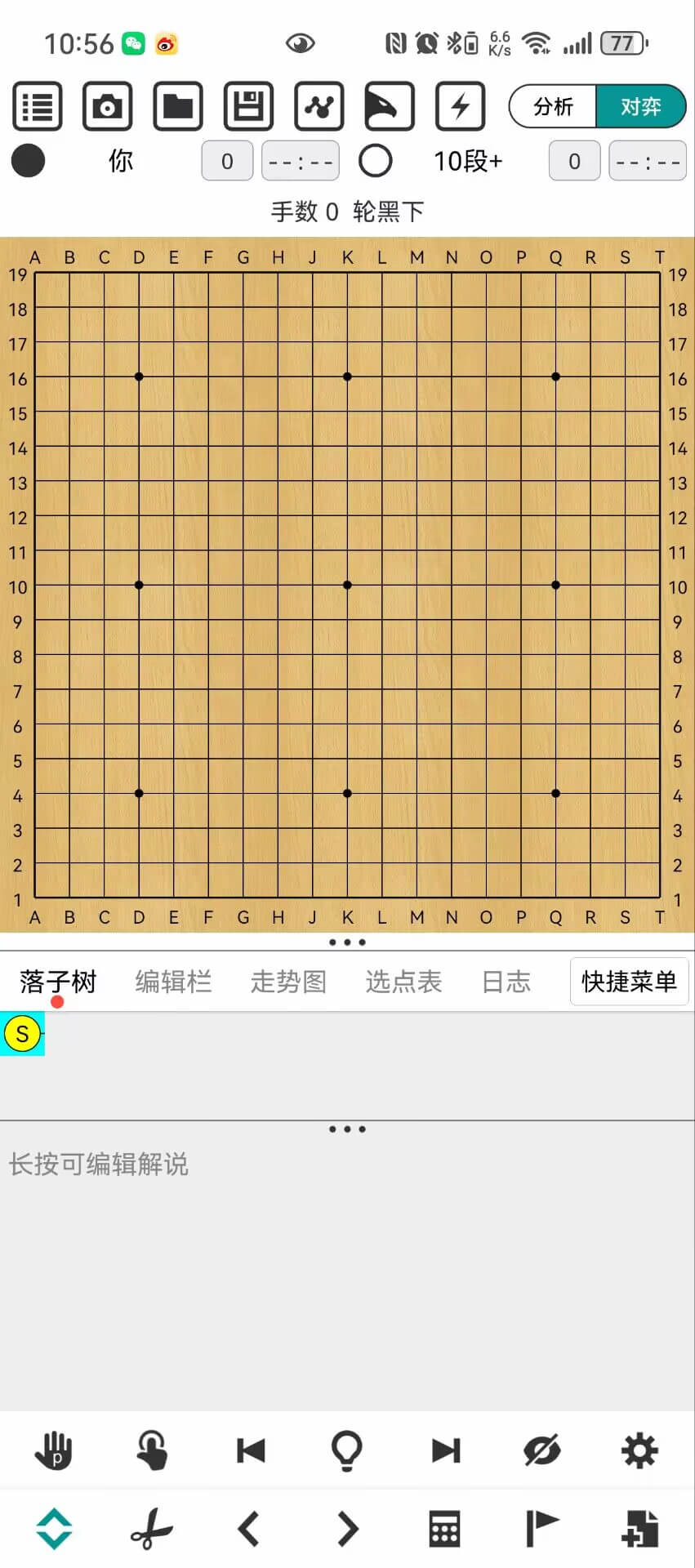 先点击右下角 新建对局 按钮清空棋盘,然后点击右上角 分析\对弈模式切换 按钮切换到对弈模式