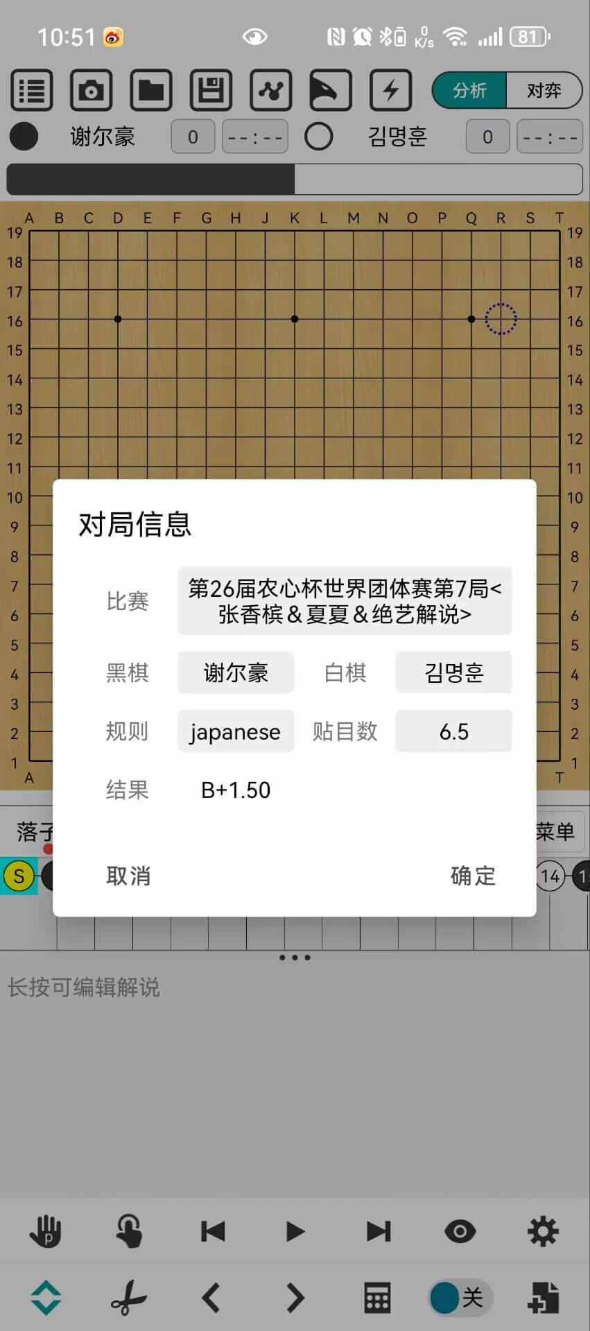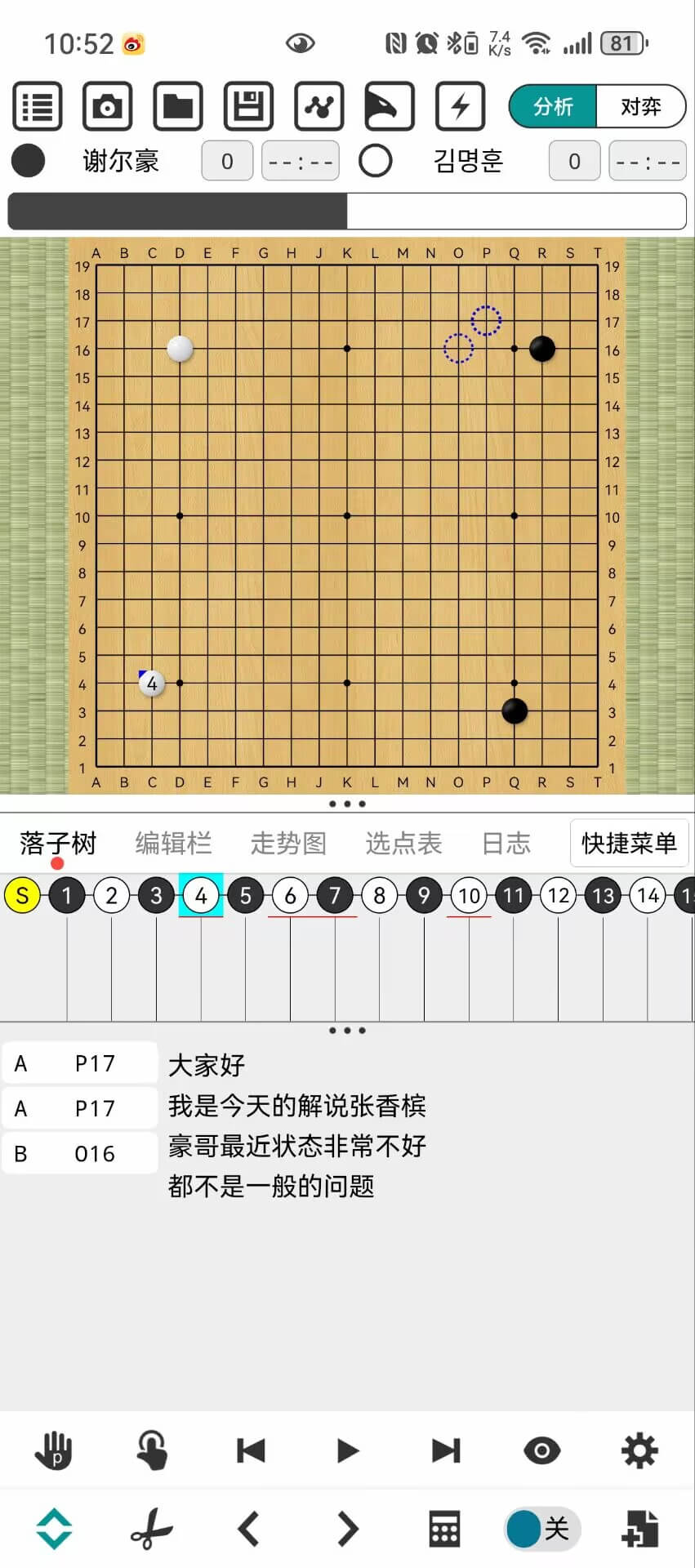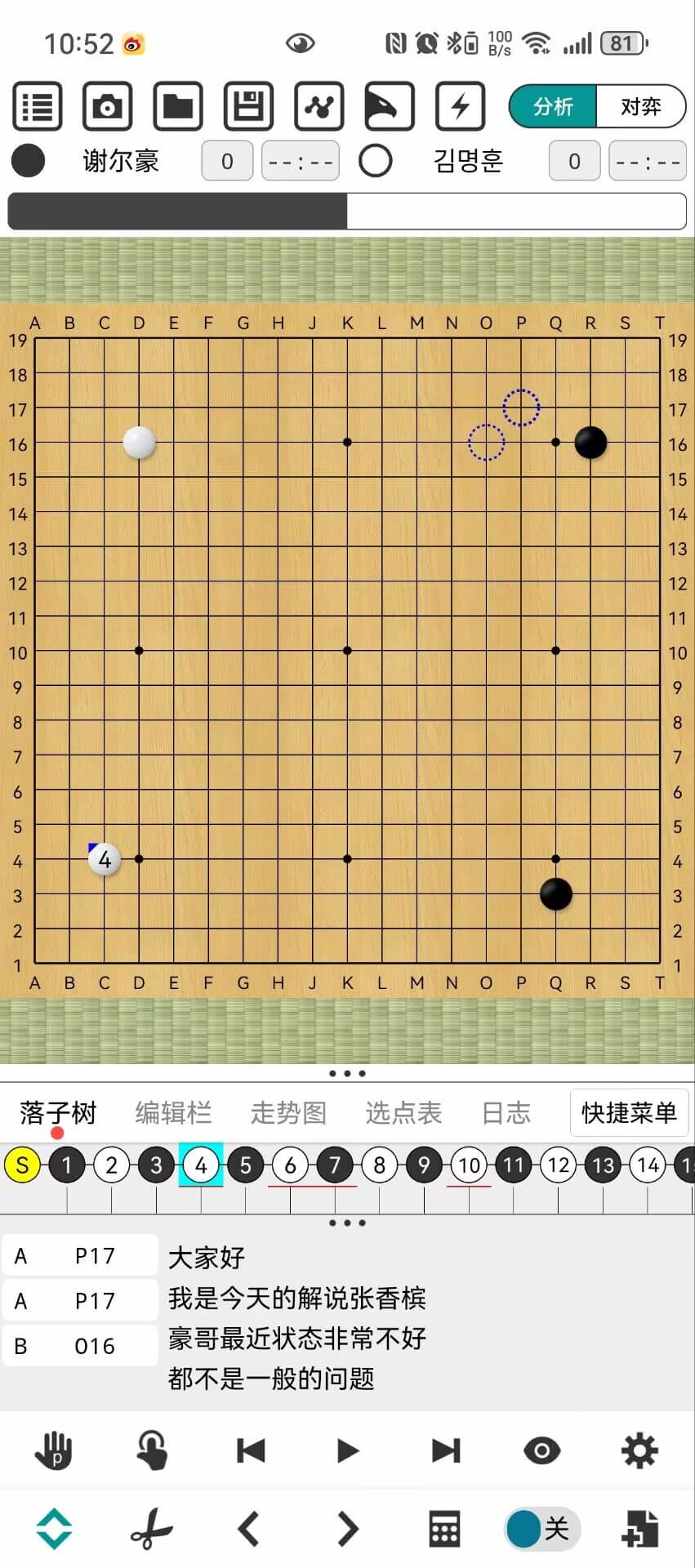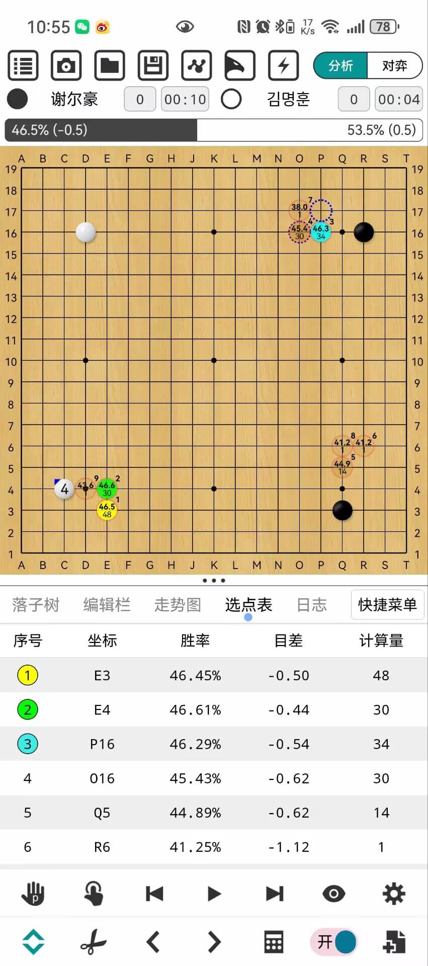 点击 分析 按钮,开始对棋谱进行鹰眼分析