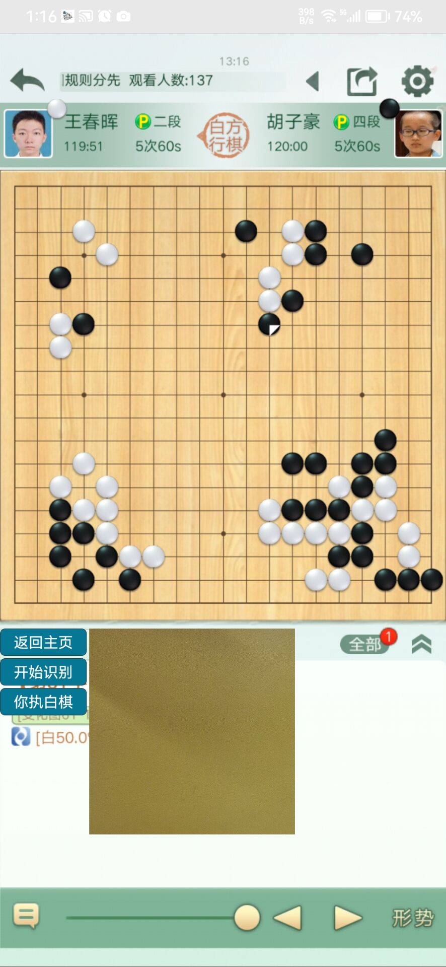 切换应用,打开野狐、弈城、弈客等对弈平台对局页