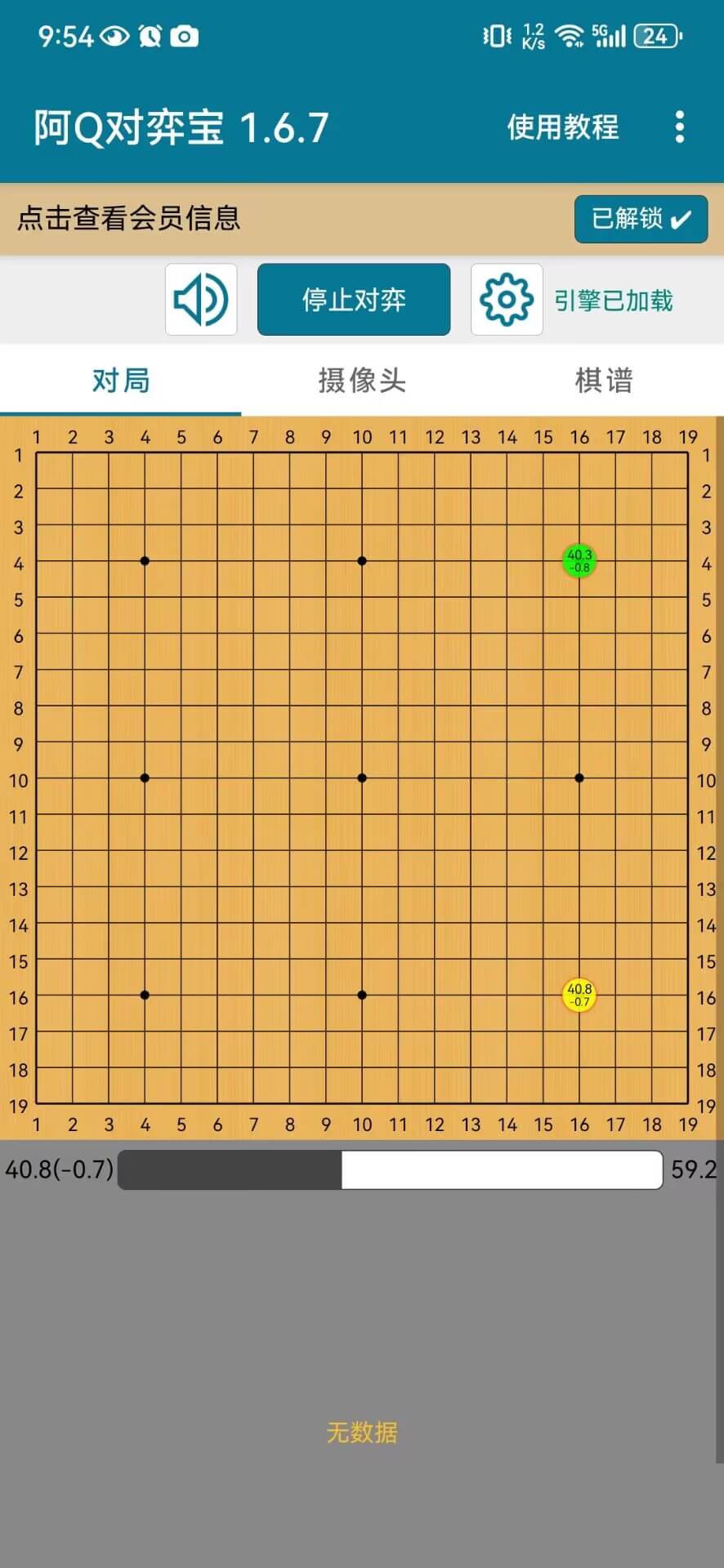 对弈宝是一款支持使用手机摄像头实时记谱,在实体棋盘上连线 AI 或第三方对弈平台进行对弈的软件