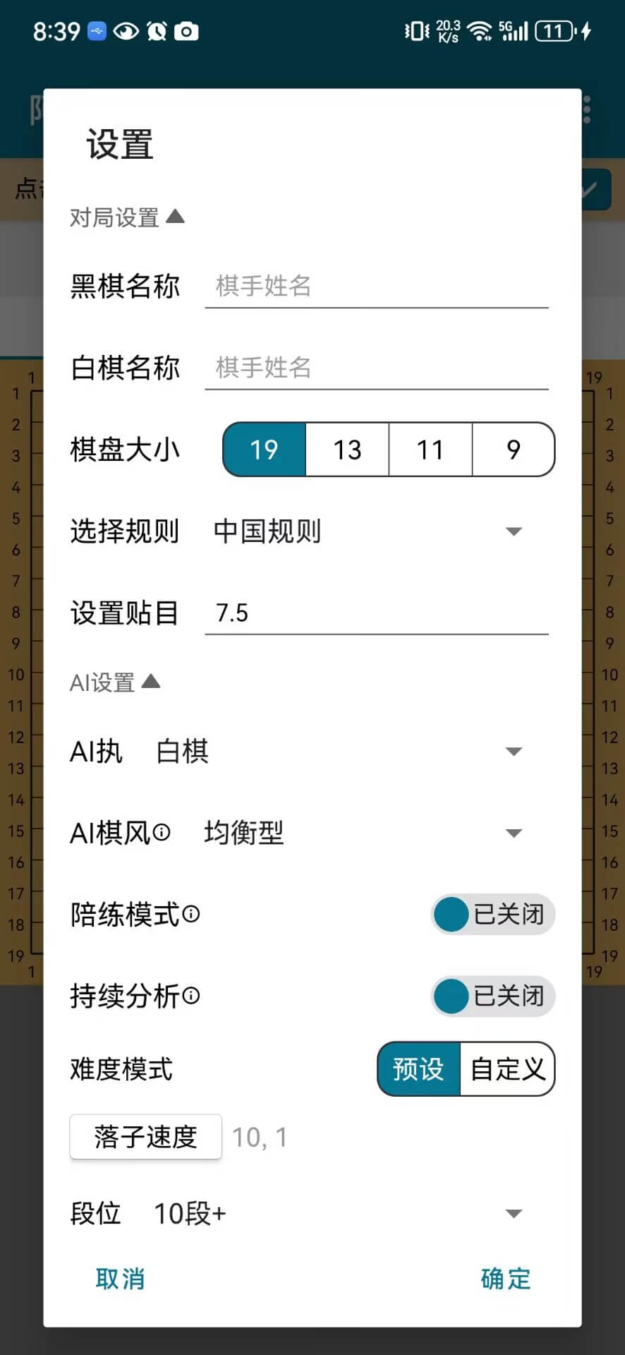 点击开始按钮右侧的齿轮按钮,可以进行对局设置、AI 设置等