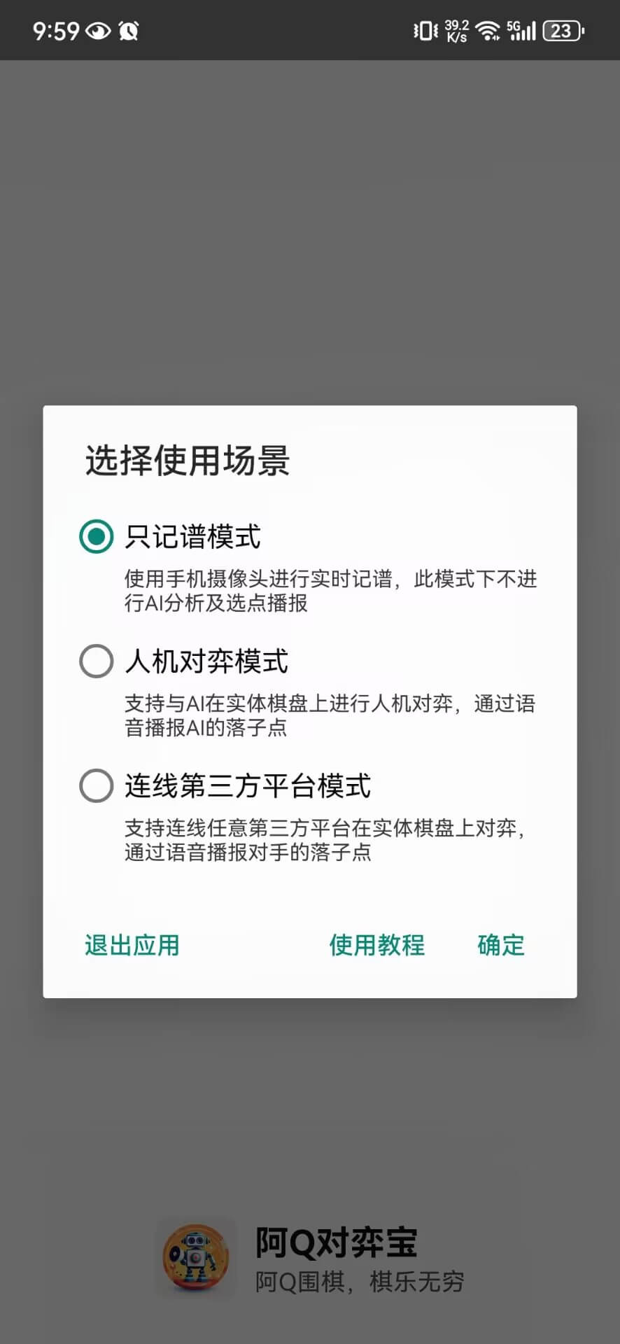 打开对弈宝可以看到三种使用场景的选择弹窗