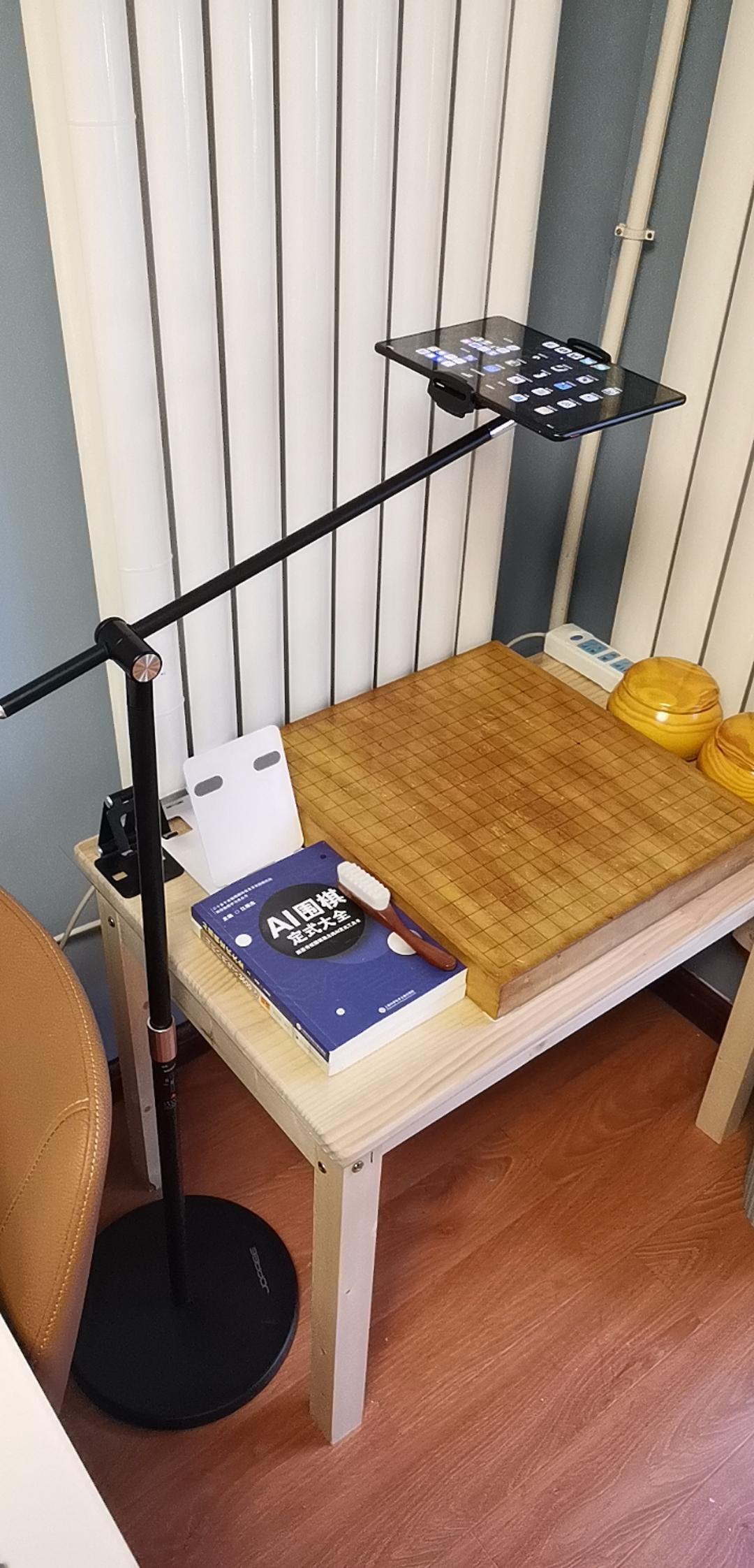 首先将手机固定在支架上,推荐使用如图所示能将手机移动到棋盘正上方的支架,识别效果更佳